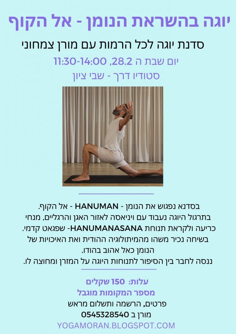 סדנת יוגה בנושא הנומן - שבת ה 28.2 בשבי ציון