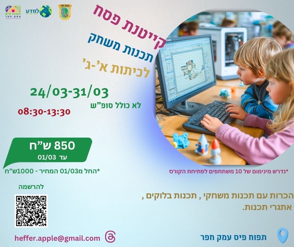 קייטנות פסח בגנים ובכיתות א׳-ג׳
