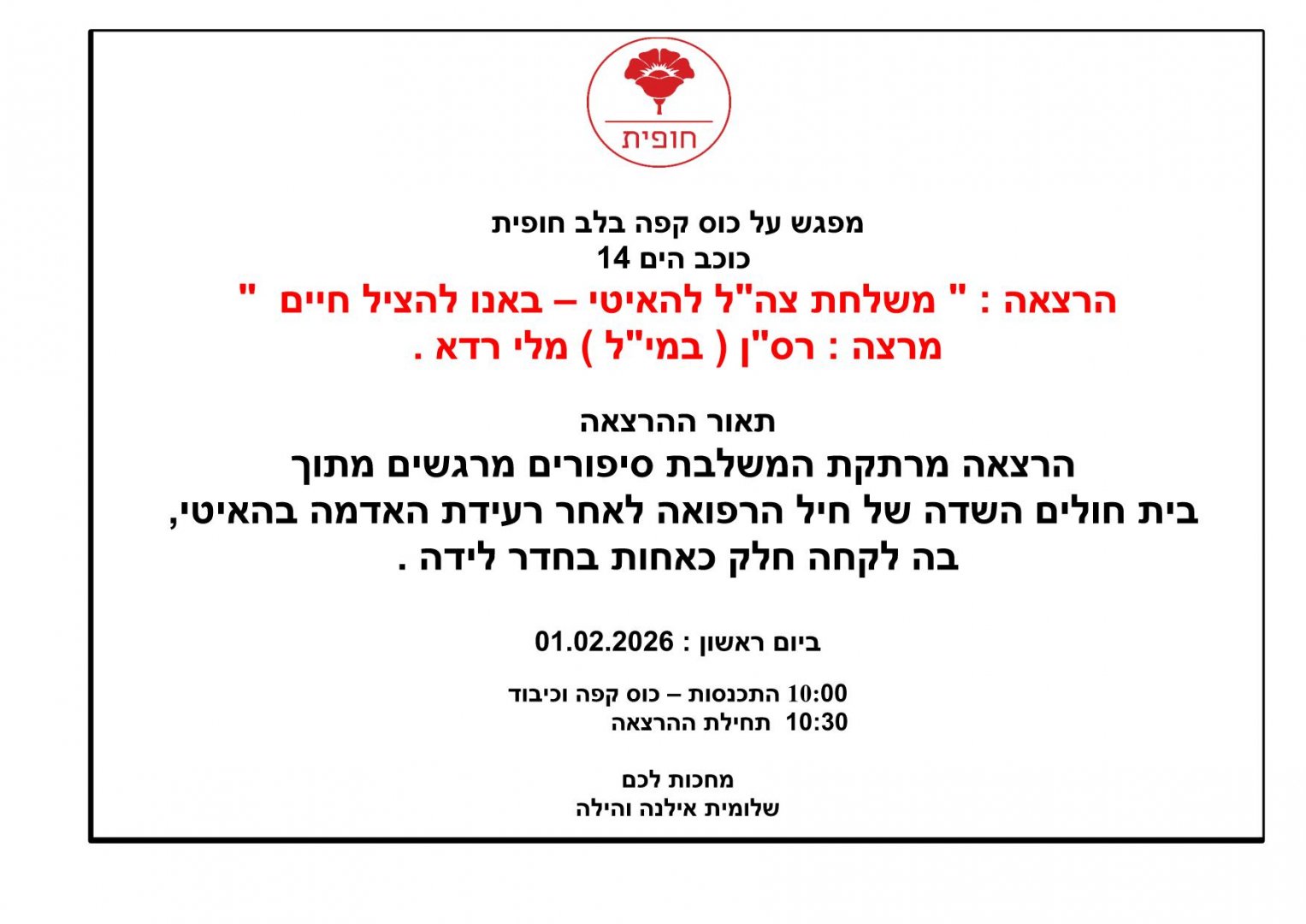 הרצאה של ד״ר עינת גלזר בלב חופית