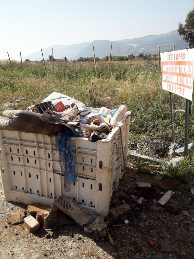 בסוף רחוב מנחם, נזרק דולב ובו כמות גדולה של אשפה.