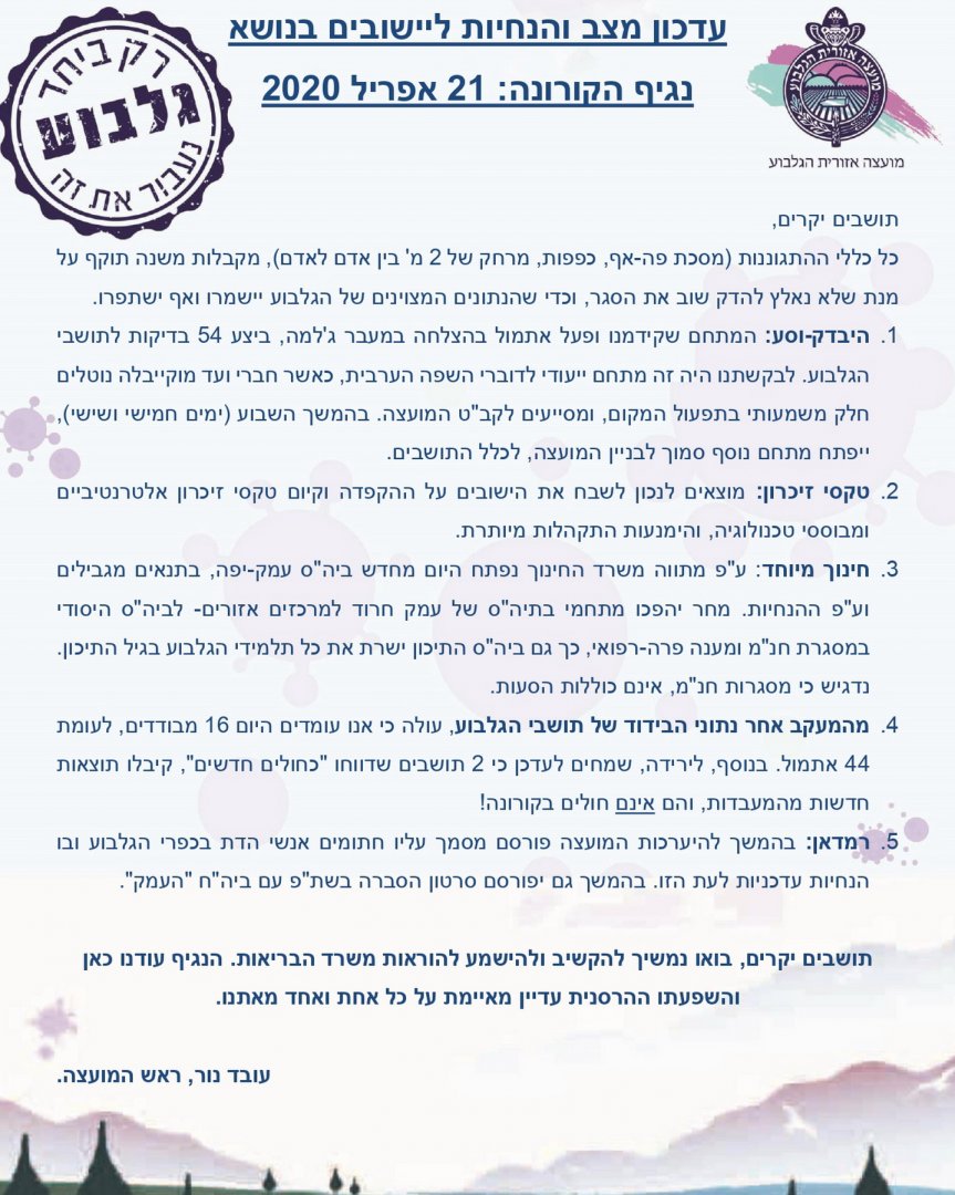 מועצה אזורית גלבוע • 21/4/2020 • כניסות