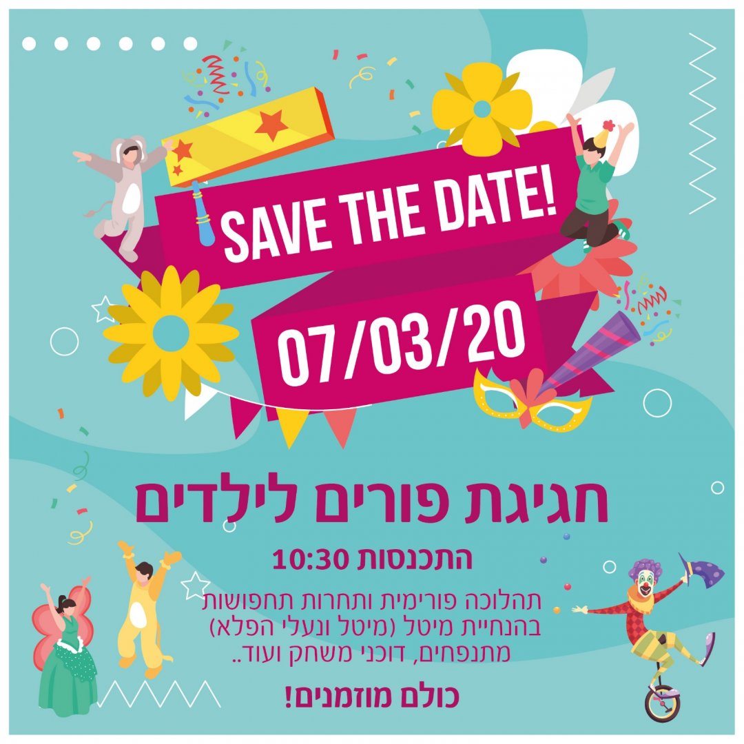 חגיגת פורים לילדי כפר יחזקאל- שבת הבאה