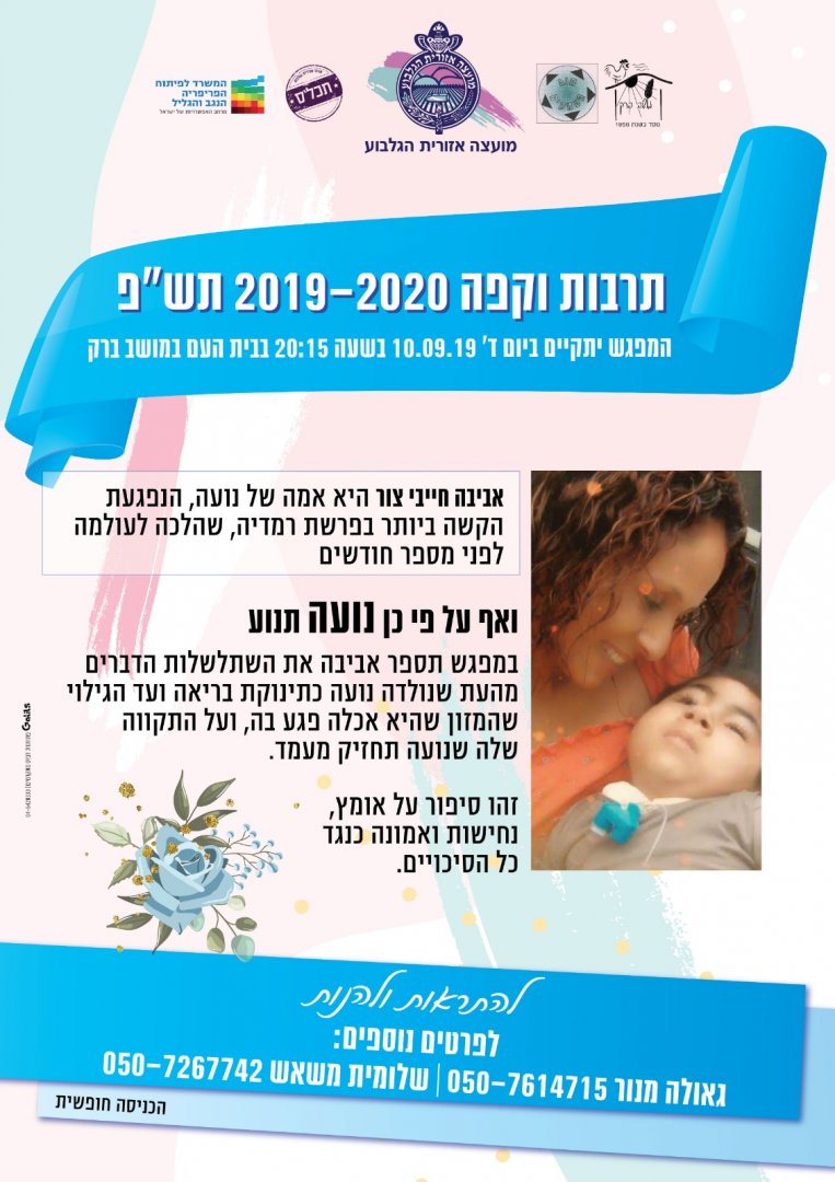 במפגש תספר אביבה על השתלשלות הדברים, מהעת שנולדה נועה כתינוקת בריאה ועד הגילוי שהמזון שהיא אכלה פגע בה,
