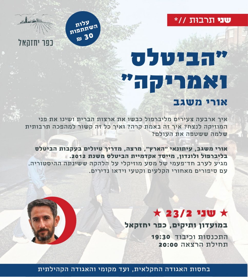 יום שני - הביטלס ואמריקה הרצאה של אורי משגב 23.2.26!!!! רישמו ביומנים