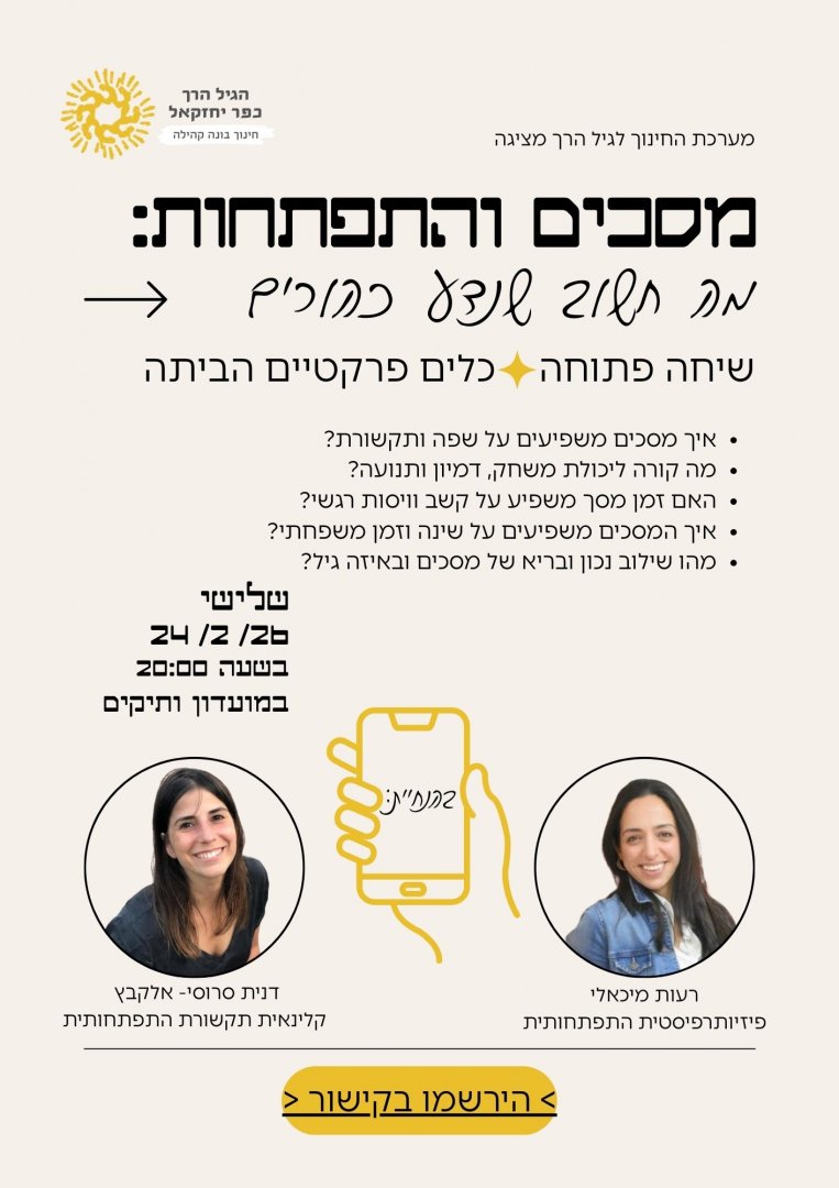 מחר! הרצאה להורי הגיל הרך- מסכים והתפתחות