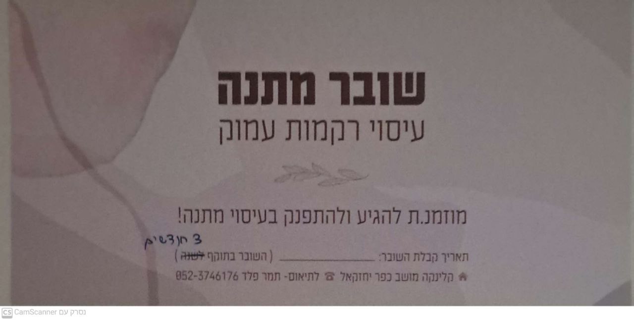 אפשר לקבל אצלי שובר מתנה לעיסוי רפואי. מצויין ...