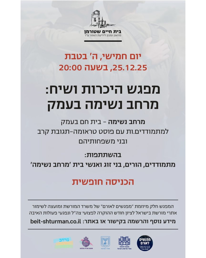 'מרחב נשימה בעמק' מפגש ושיח פתוח על פוסט טראומה מחר חמישי 20:00 בבית שטורמן