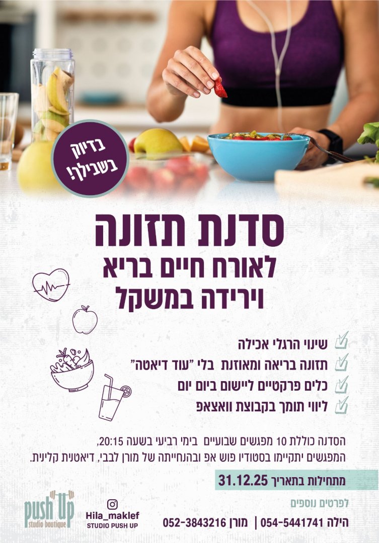 סדנת תזונה לאורח חיים בריא וירידה במשקל