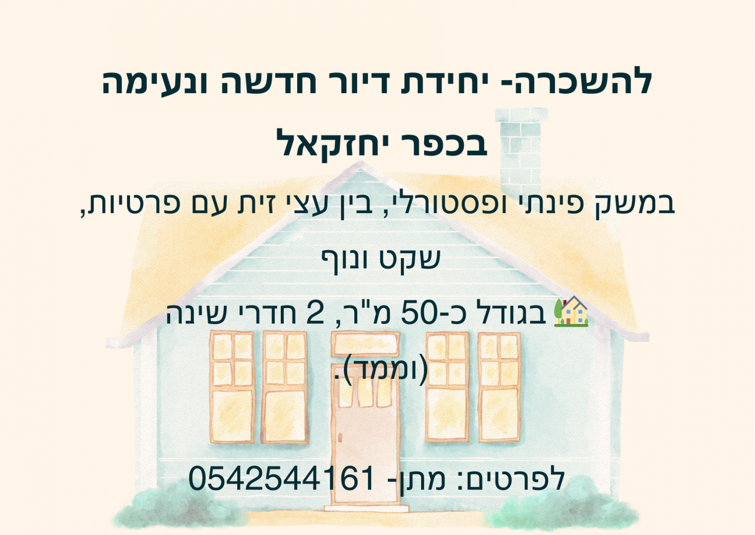 יחידת דיור להשכרה- כפר יחזקאל