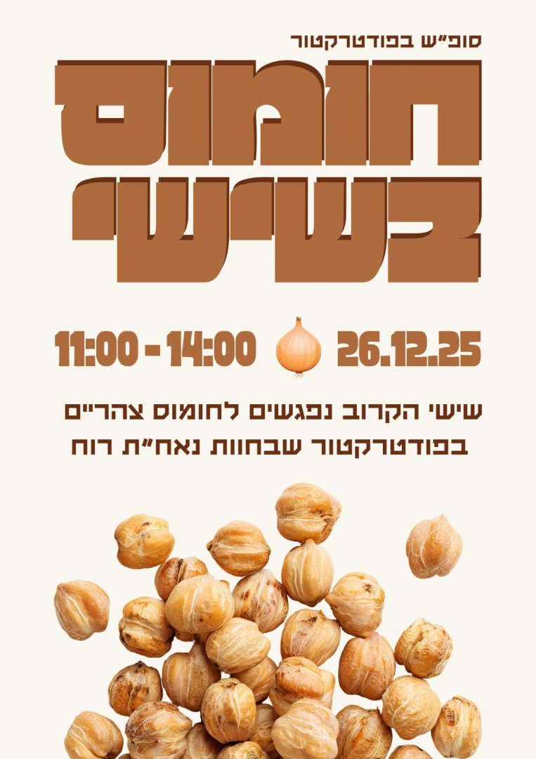 חומוס בשישי בפודטרקטור בחווה וירקות אורגניים טריים ישר מהשדה