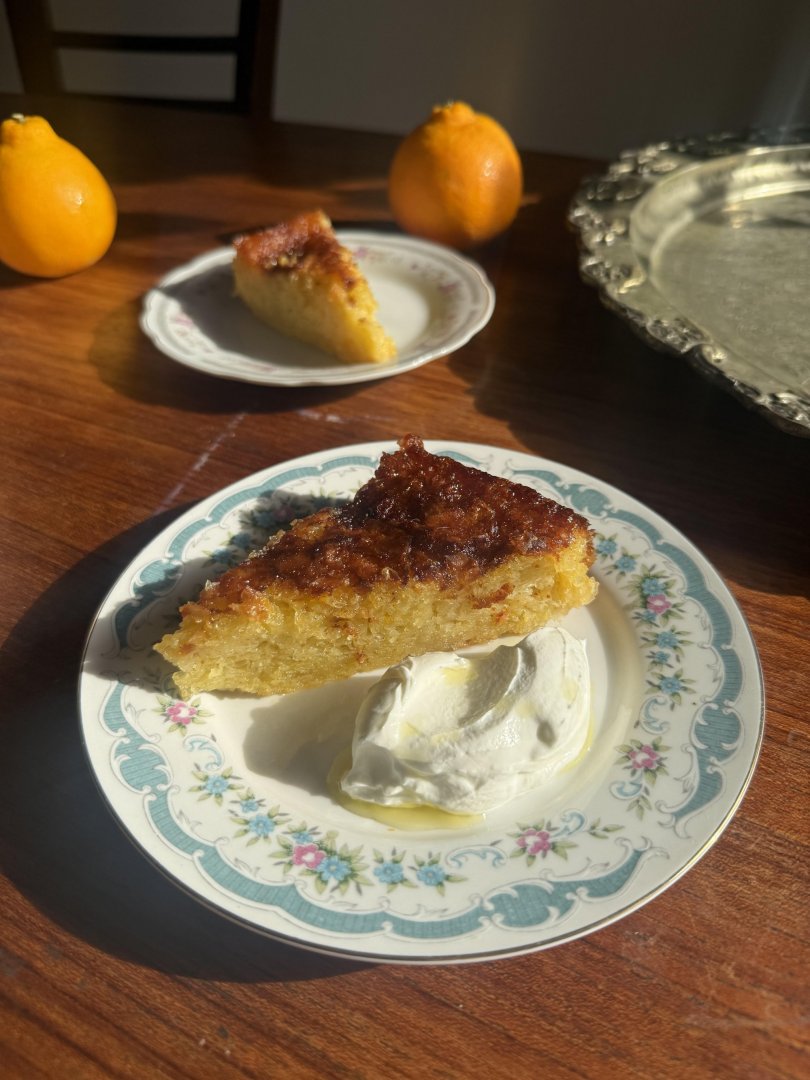 [1] ״פּוֹרְטוֹקָאלוֹפִּיטָה: עוגת תפוזים יוונית מסורתית״ (עם תפוזים ממשק ״גרוסר״, ביצים מ׳משק כנען׳ ובצק בקלאווה מנצרת) –