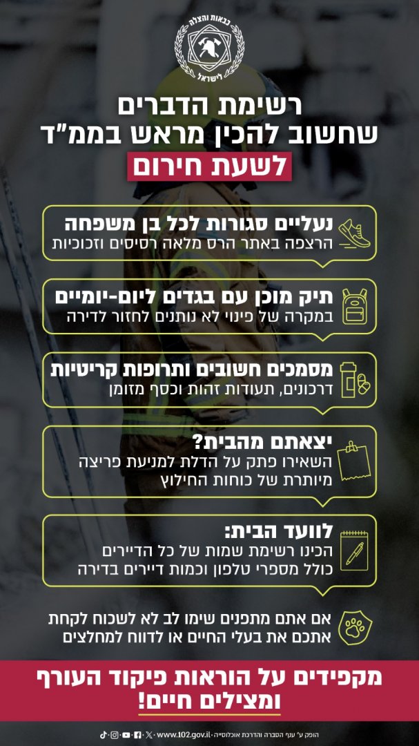 הנחייה מנחה בכל שהייה במרחב מוגן דירתי - שמרו מפתח של דלת הבית בממ״ד!!!!