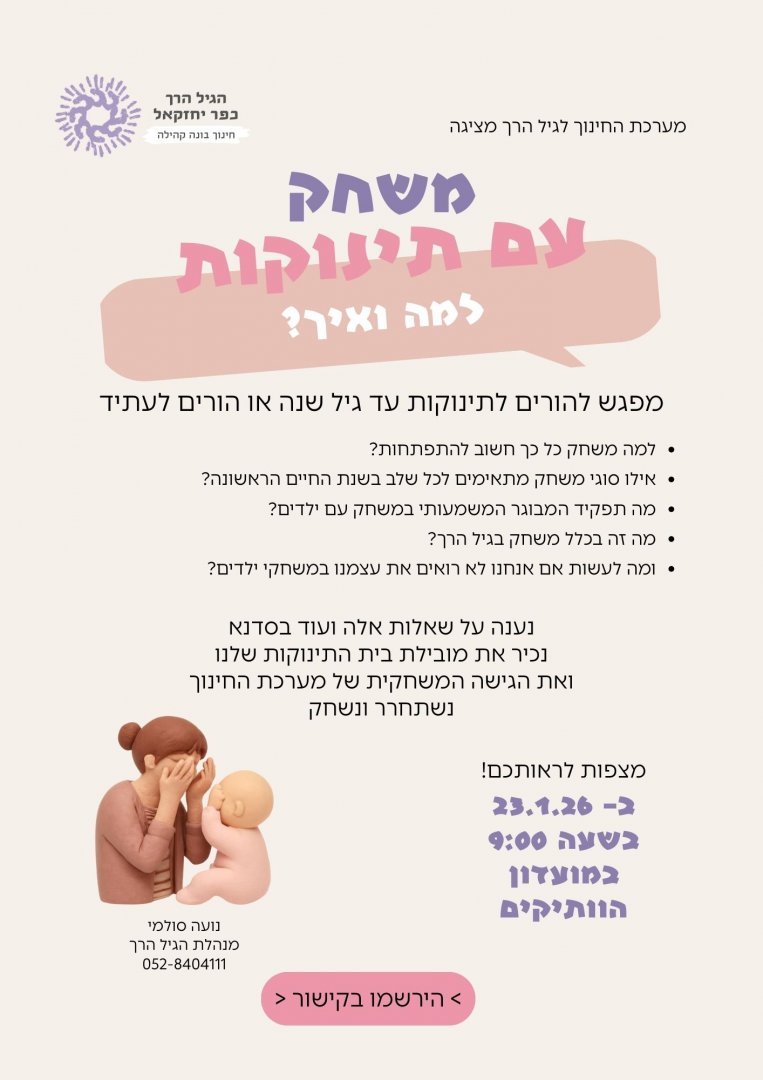 הזמנה למפגש להורים לתינוקות (או לעתיד)- משחק עם תינוקות והיכרות עם המערכת