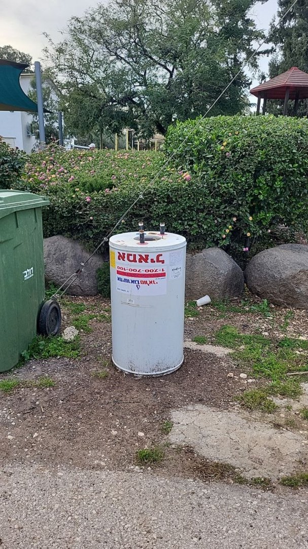 הדוד הזה מחכה ליד הפח מול מרפאת השיניים. יושב ...