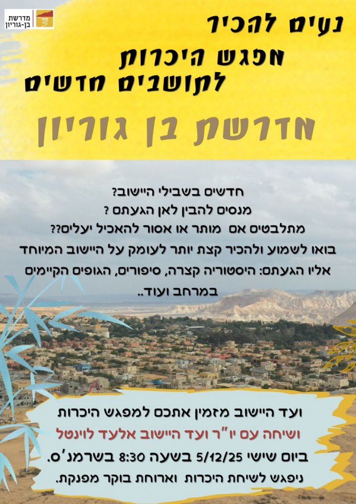 נשמח אם תכתבו לנו באיזה נושאים תרצו להתמקד על מנת שנוכל להעבירם מראש.